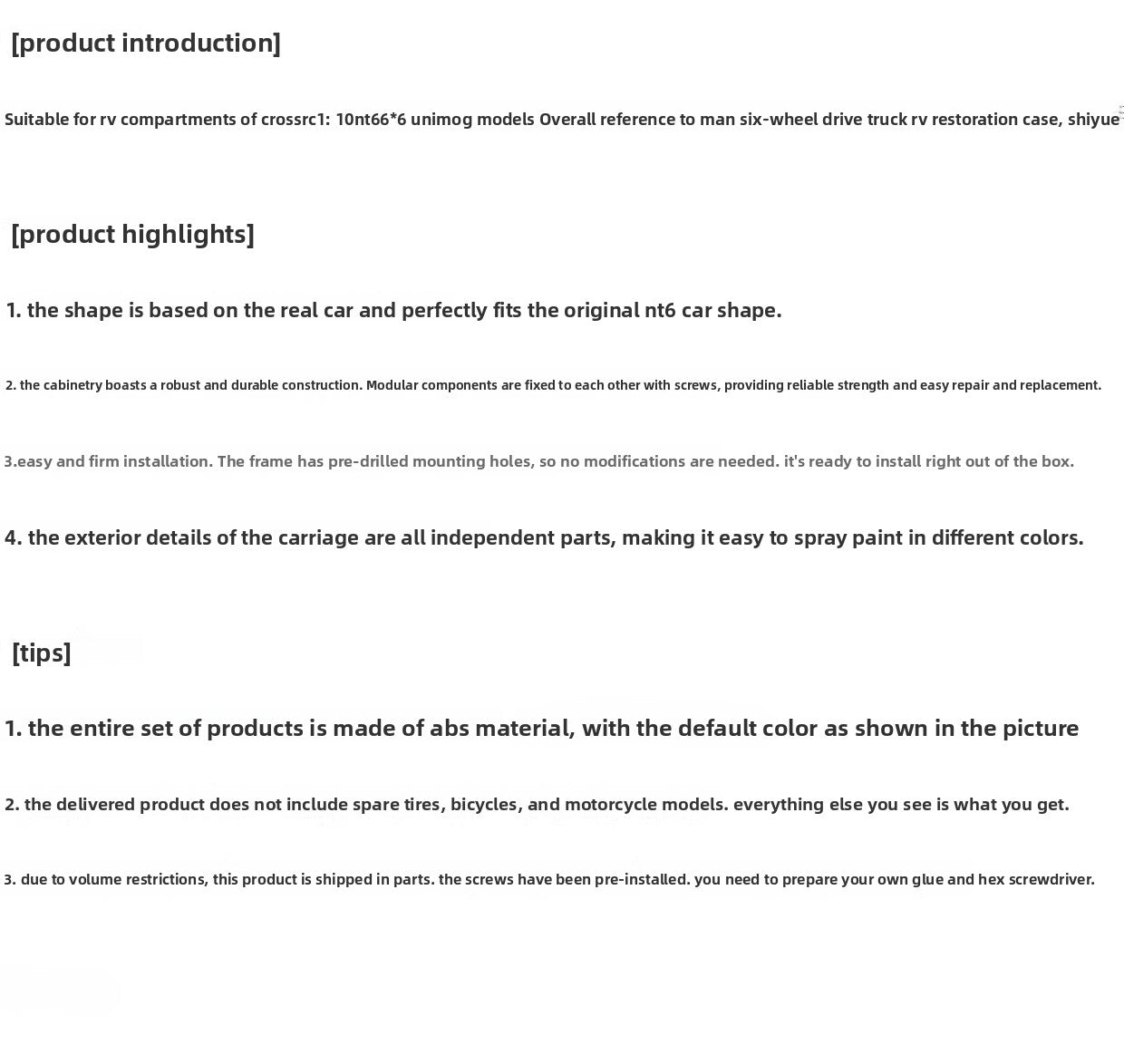 Note, the price does not include the crossrc nt6 remote control car, just 3D printing, RV compartment,