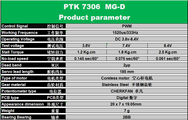 PTK 7306 MG-D 7g All Metal Digital Servo Actuator F5L F3D RCKST x06