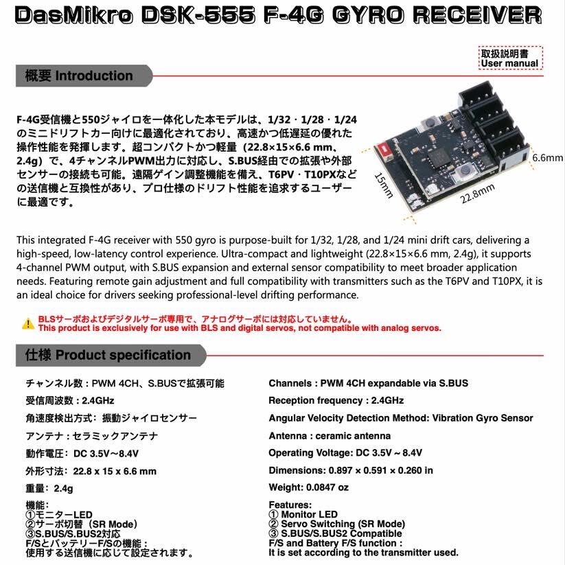 FUTABA T10PX Remote Transmitter F4-G Receiver Integrated Gyroscope Dsk-555 for 1/24 RC DRIFT CAR