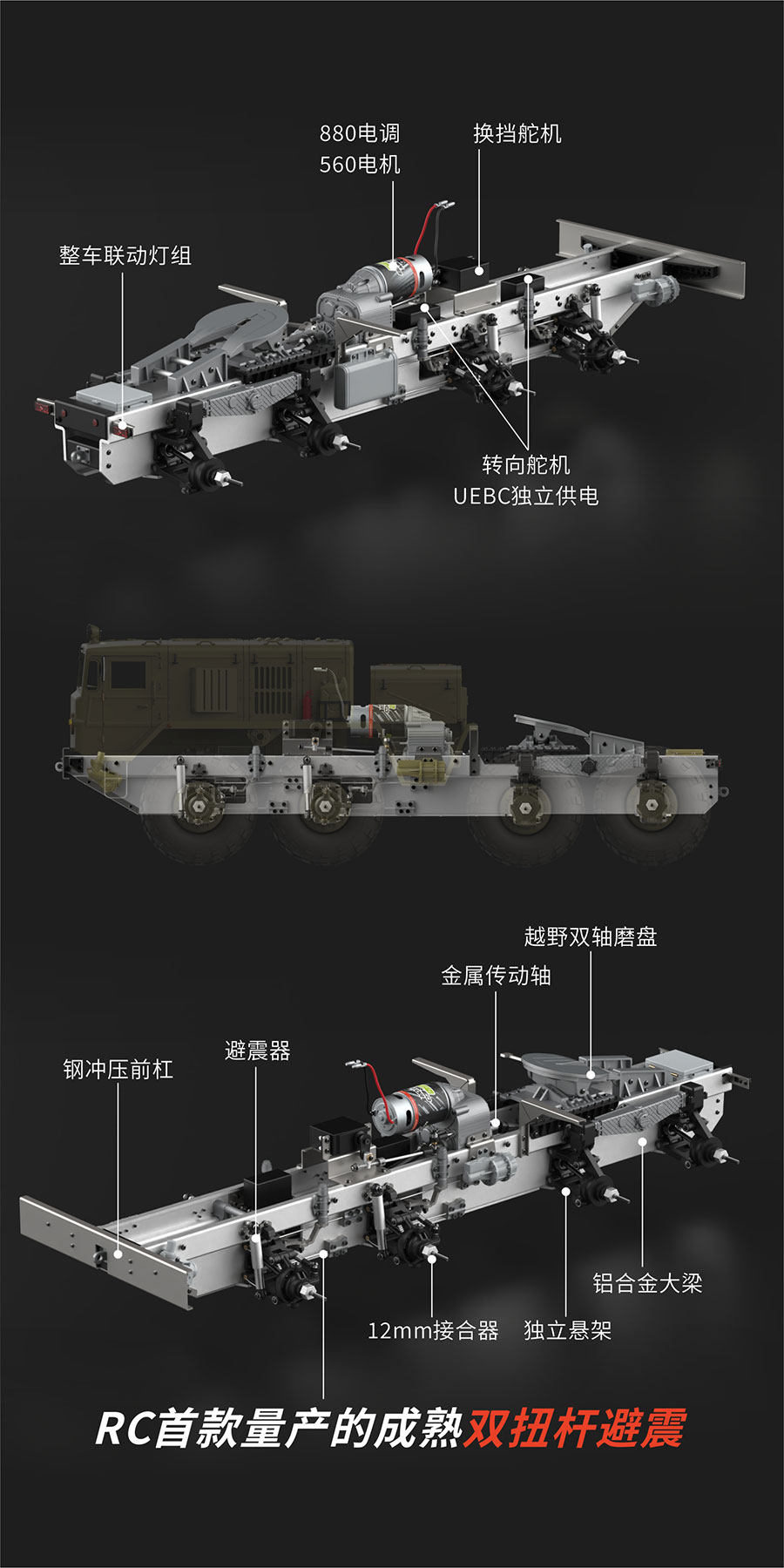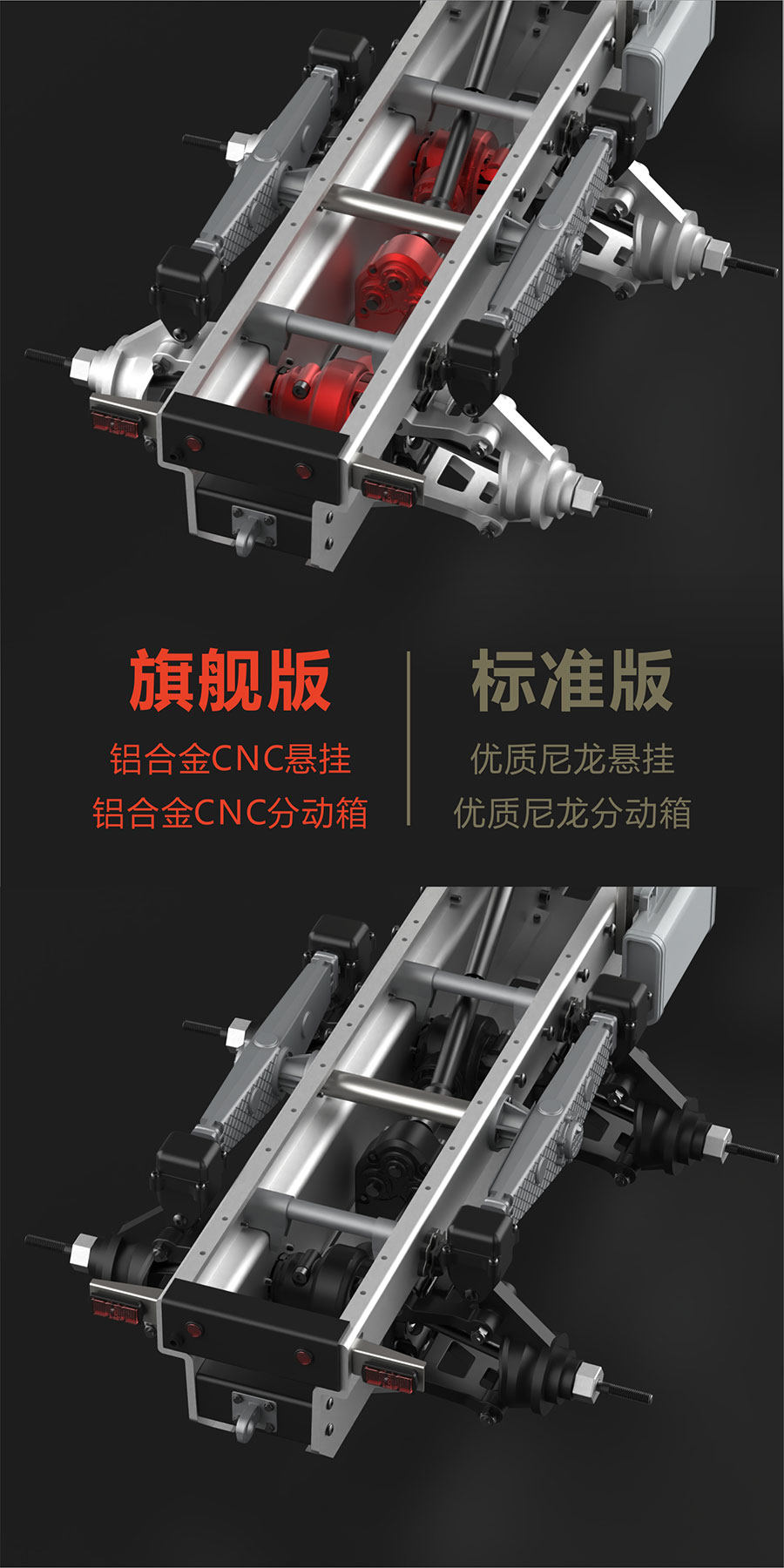 The difference between the BC8 flagship version and the BC8 standard version: the standard version, the swing arm, the steering cup, the gearbox shell, and some other parts are made of nylon material, excluding sound. The flagship version contains 42 metal OP parts, as well as a sound system.