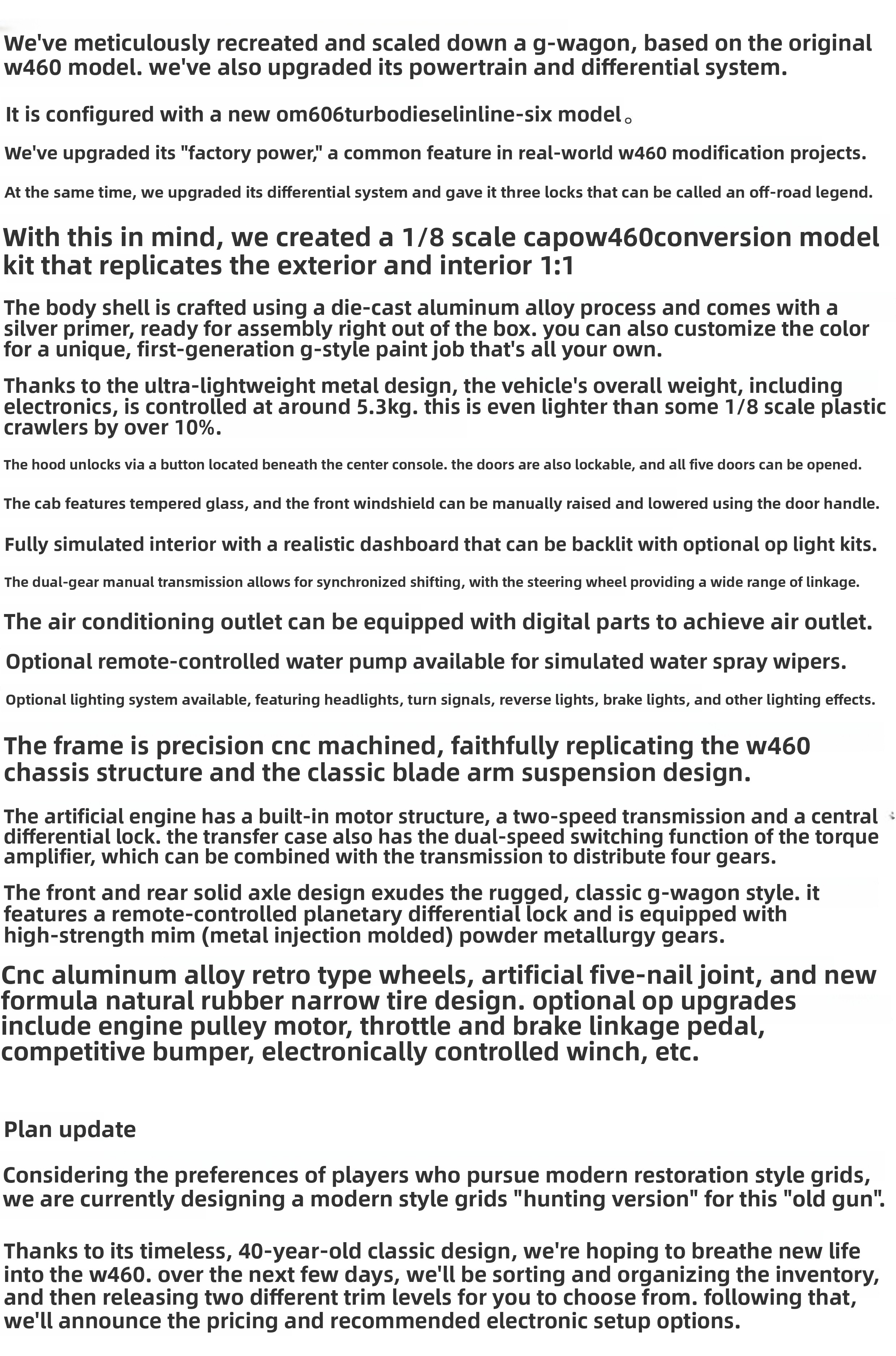 Capo W460 1/8 RC Full Metal Climbing Car KIT