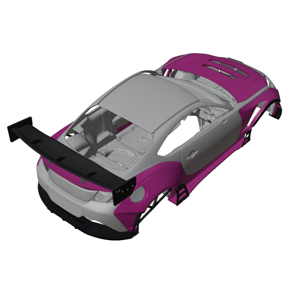 The rear wing of the race version is integrated with the trunk.