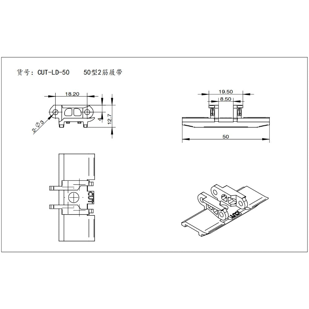 CUT-LD-01 1/14 RC Hydraulic Excavator Zinc Alloy Track 50MM Wide