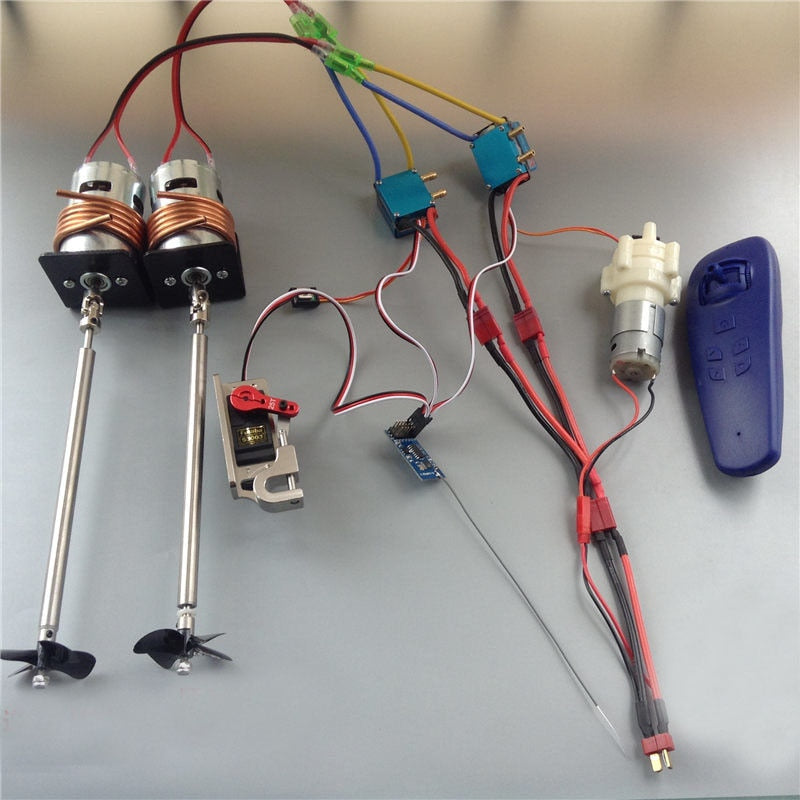 Granda ĉevalforta reto kun duobla 775-motoro 480A akvomalvarmigita ESC 50mm kvar-blada helico 400 m 2.4G diferenciala teleregilo. Aluminia aloja malkunliga aparato. 385 akvopumpilo.