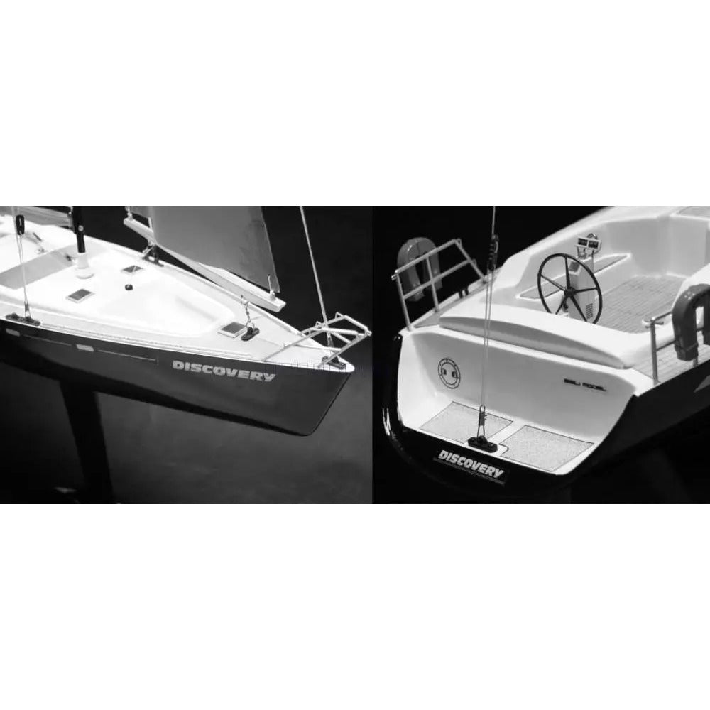 The Discovery-II is a larger and improved version of the old Discovery 500. Boasting a 620mm long hull, and a enlarged sail with 0.18 sq. meter of sail area, the Discovery-II is actually a hybrid that also features a small brushed motor to help you should you get into trouble or are stuck in light winds.