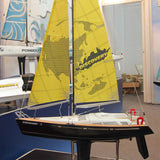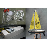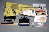 All required items are installed, including mainsail winch, steering servo, rigging, and sails with 4-channel transmitter and receiver plus receiver battery to be ready to sail.