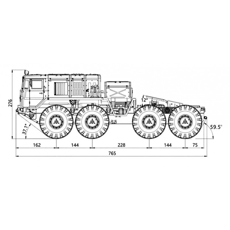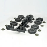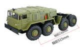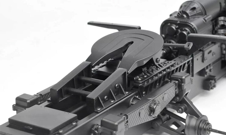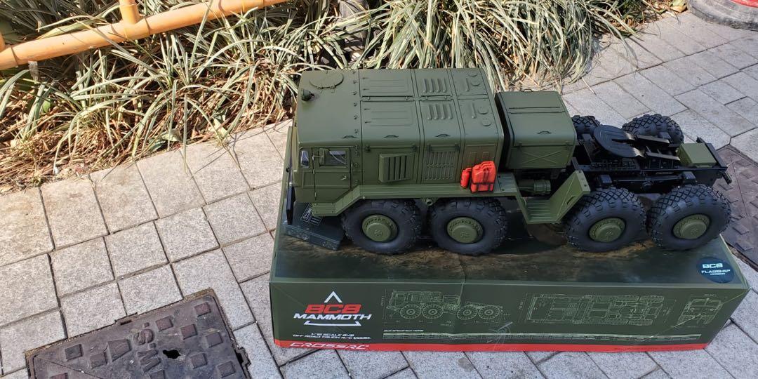 The BC8 realistically reproduces the rough and ferocious mechanical monster features of the prototype car, and is a classic representative of violent aesthetics. The main beam is made of all metal and is simulated to be sturdy. The entire vehicle suspension consists of 8 independent rocker arms. The first two axles are steering axles, and the steering angle is carefully calculated and designed to match the steering angle of a real car's multi axle steering. The front suspension uses dual torsion bars and spring shock absorbers as shock absorbers, with adjustable softness and hardness, providing a realistic driving posture. The rear two axles adopt a balanced beam suspension, which can better achieve load bearing and towing functions on the basis of posture and simulation.