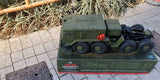 The entire vehicle is an independent suspension system, with exquisitely designed and authentically reproduced 8 sets of front torsion springs and rear balance beam suspension; a specially developed 560 high-power and high-torque brushed motor; 8X8 all-wheel drive; an all-metal transmission shaft and 8 sets of reinforced Φ5CVD Half shafts; all-metal gear two-speed gearbox; 4-wheel linkage steering; 135mm giant mammoth tires, together create this mechanical monster. The entire car is equipped with violent equipment and is ready to go!