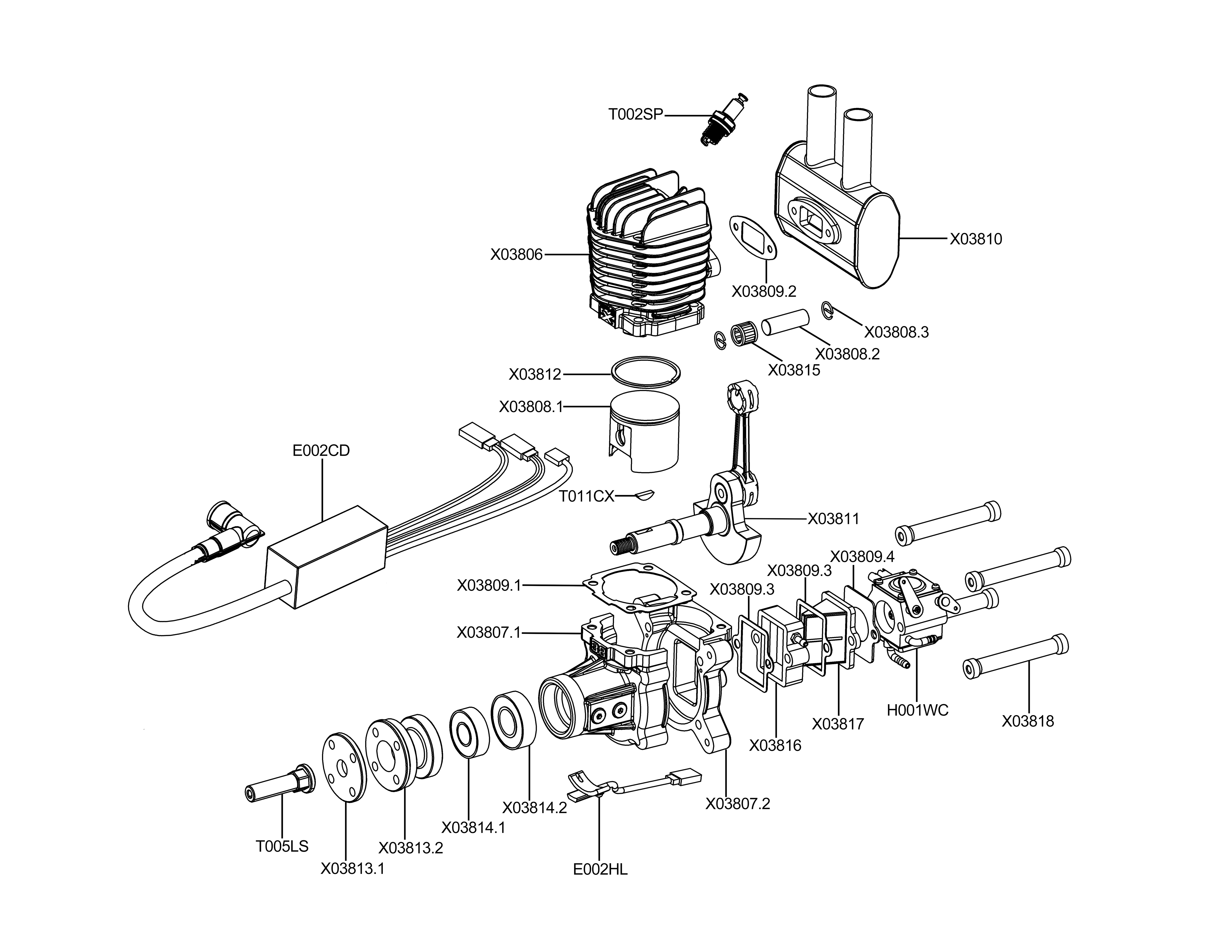 EPHIL X-38cc-R Engine Parts Engine Parts Carburetor Exhaust Pipe Piston Ring Cylinder Case