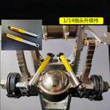 A simulated shock absorber specially developed for 1/14 heavy-duty tractors and trucks, its size and shape are as much as possible; although the outer diameter of the shock absorber is only 6mm, the rebound force generated can make the wheel rebound better, and the suspension shock absorption effect is more realistic.