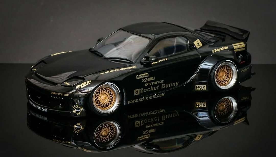 1/24RX7 RB Rocket Rabbit, op kit, suitable for Tamiya [including flip lamp assembly, heat dissipation opening machine cover, bullet rearview mirror, intercooler, BBSLM throwing wheel hub, scribing disc brake group] 3D printing resin material This product does not contain painting, and the painting effect is for reference only.