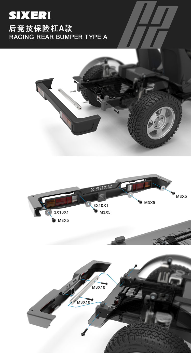 Super large size, the bumper body is carved from a large 6061 aluminum alloy cnc. It can be used with a multi-functional spare tire frame and a trailer tail hook.