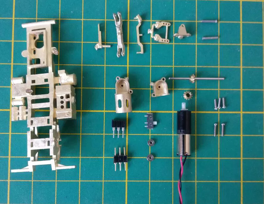 This kit is a spare part and needs to be polished and assembled by yourself. It contains several parts such as power gearbox components, steering components, frame (brass components), plugs and switches, excluding steering gear, tires, hubs, car shells, and electronic equipment.