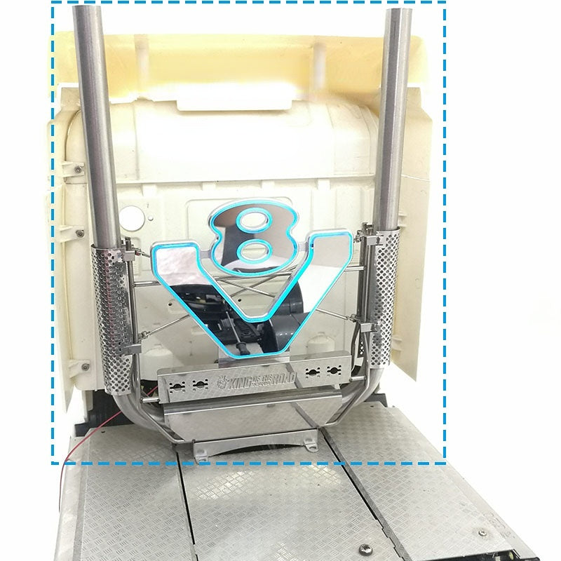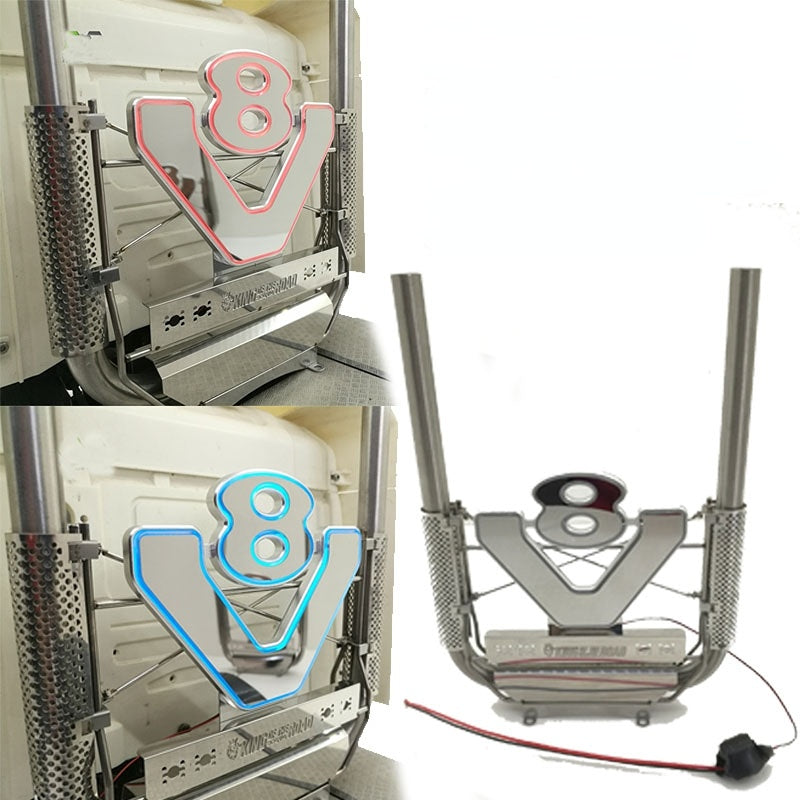 V8 LOGO Light with Exhaust Pipe for 1/14 Remote Control Tractor Tamiya Scania R620 R470 R730