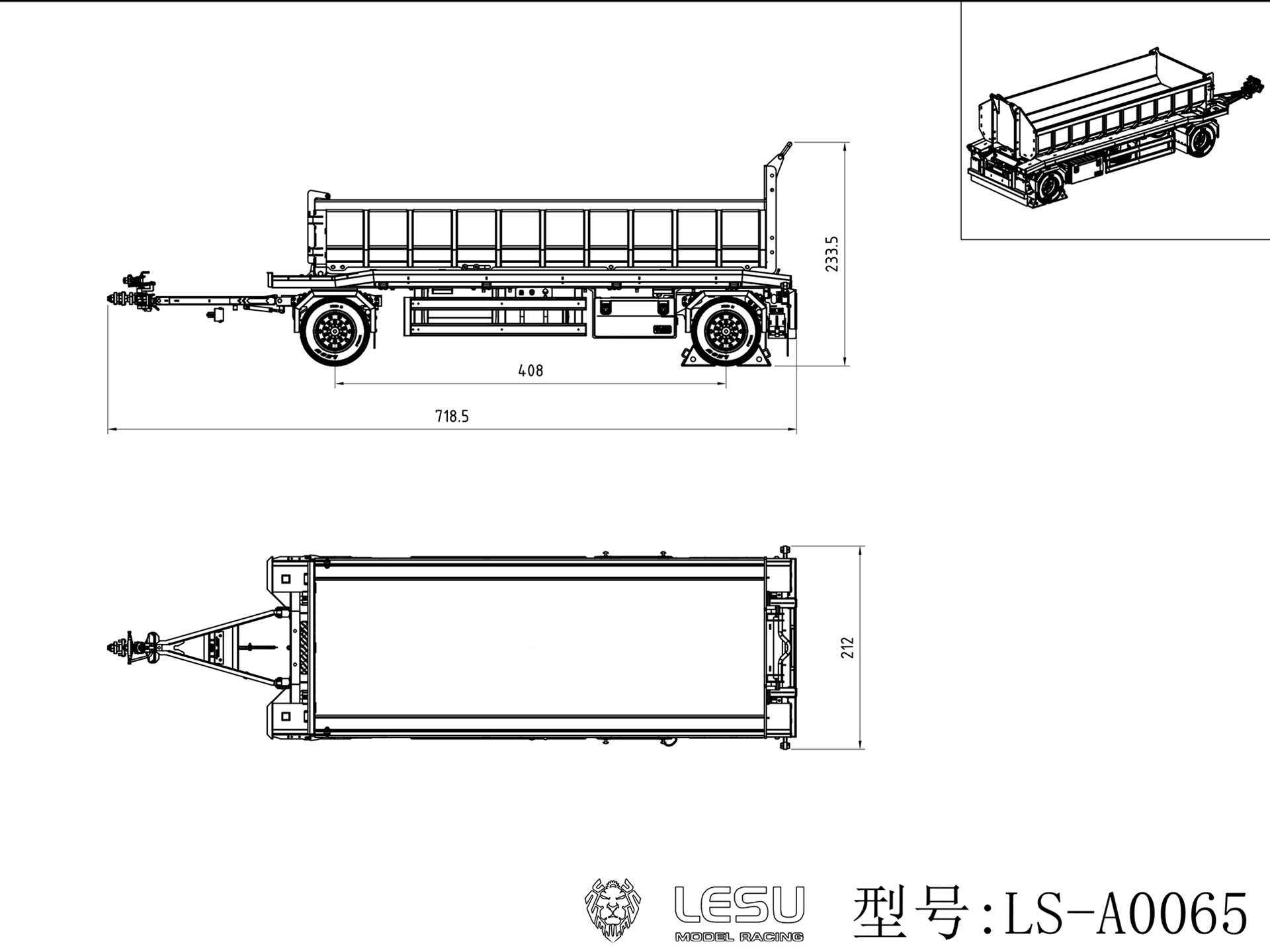 CUT HOBBY C900 1/14 RC Hydraulic Metal Dump Two AXLE Trailer