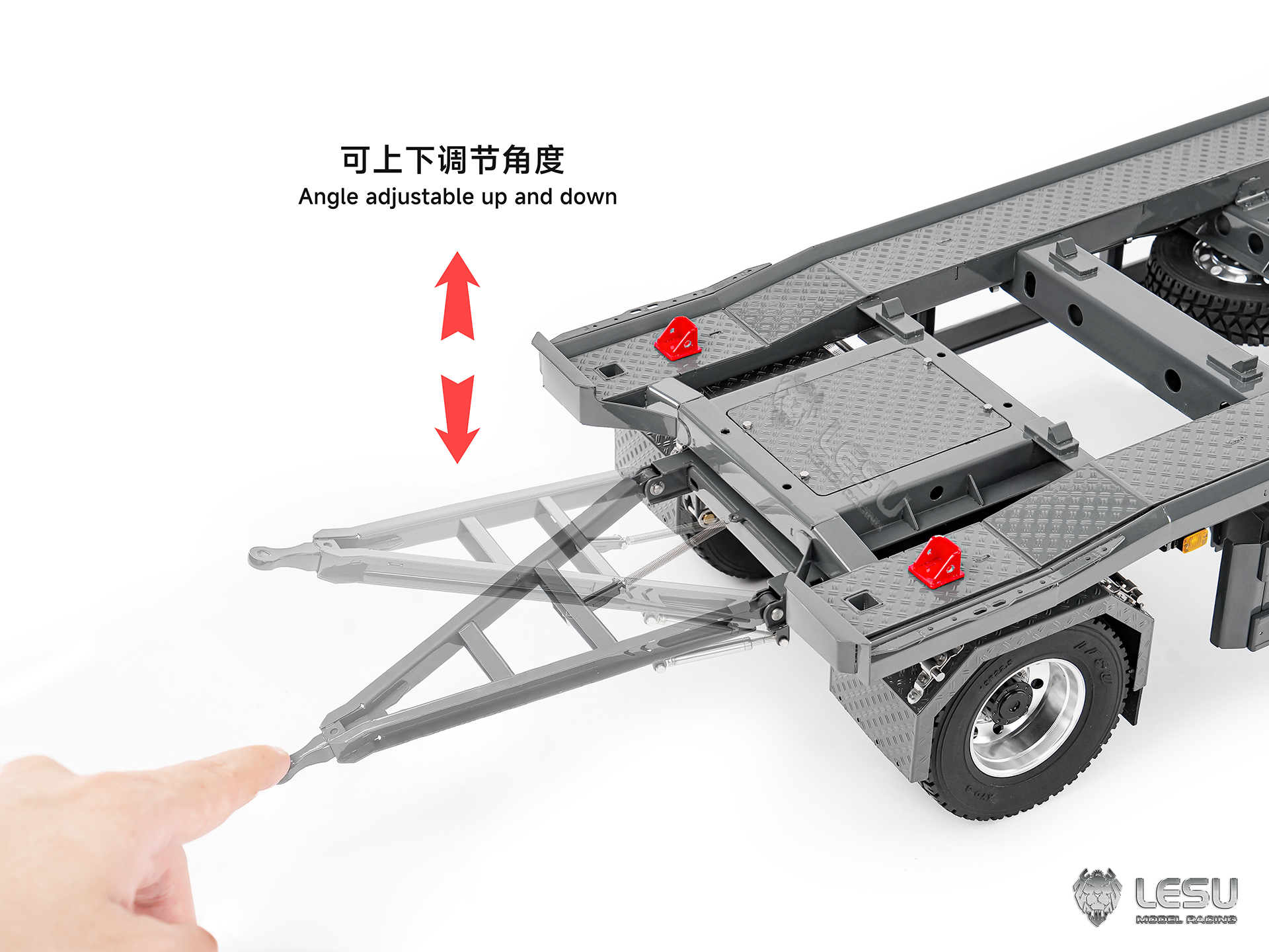 CUT MODEL 1/14 Metal Removable Hydraulic Tail Plate Low Bed Trailer CUT-QG2 + 2
