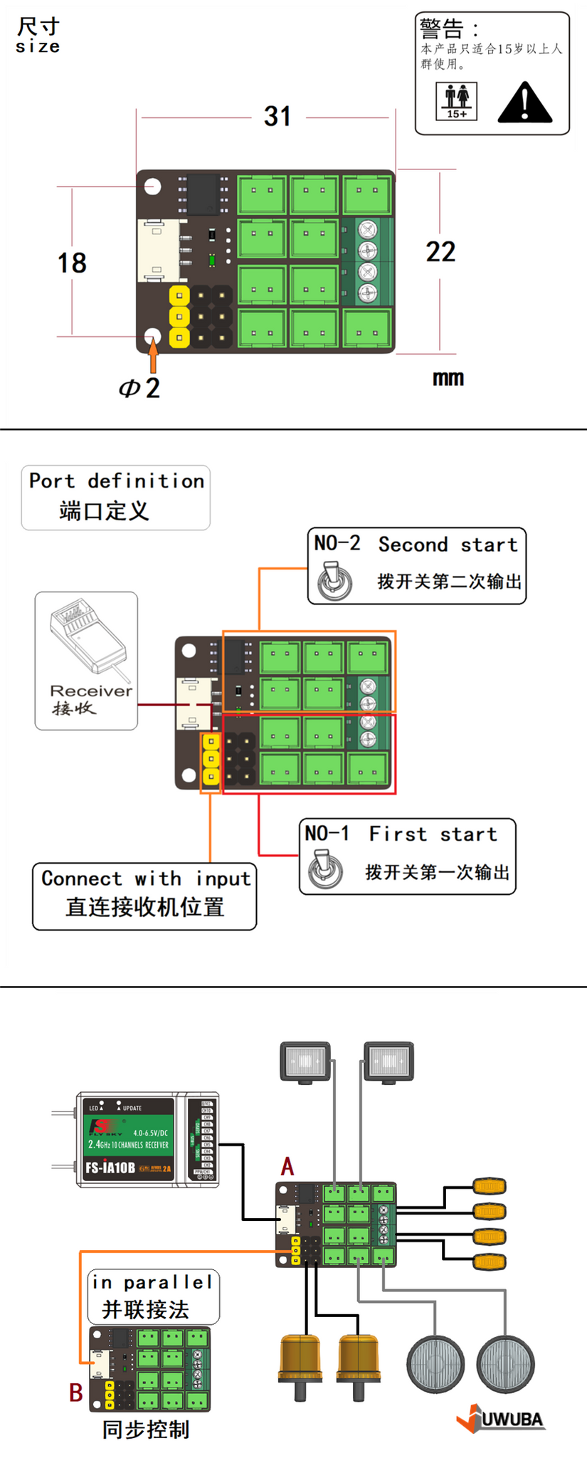Function: Controllable, extended 2-way rotary lamp interface. 10-way PH2.0 interface. 2-way terminal port, lamp beads are plug and play, no need for series resistors.